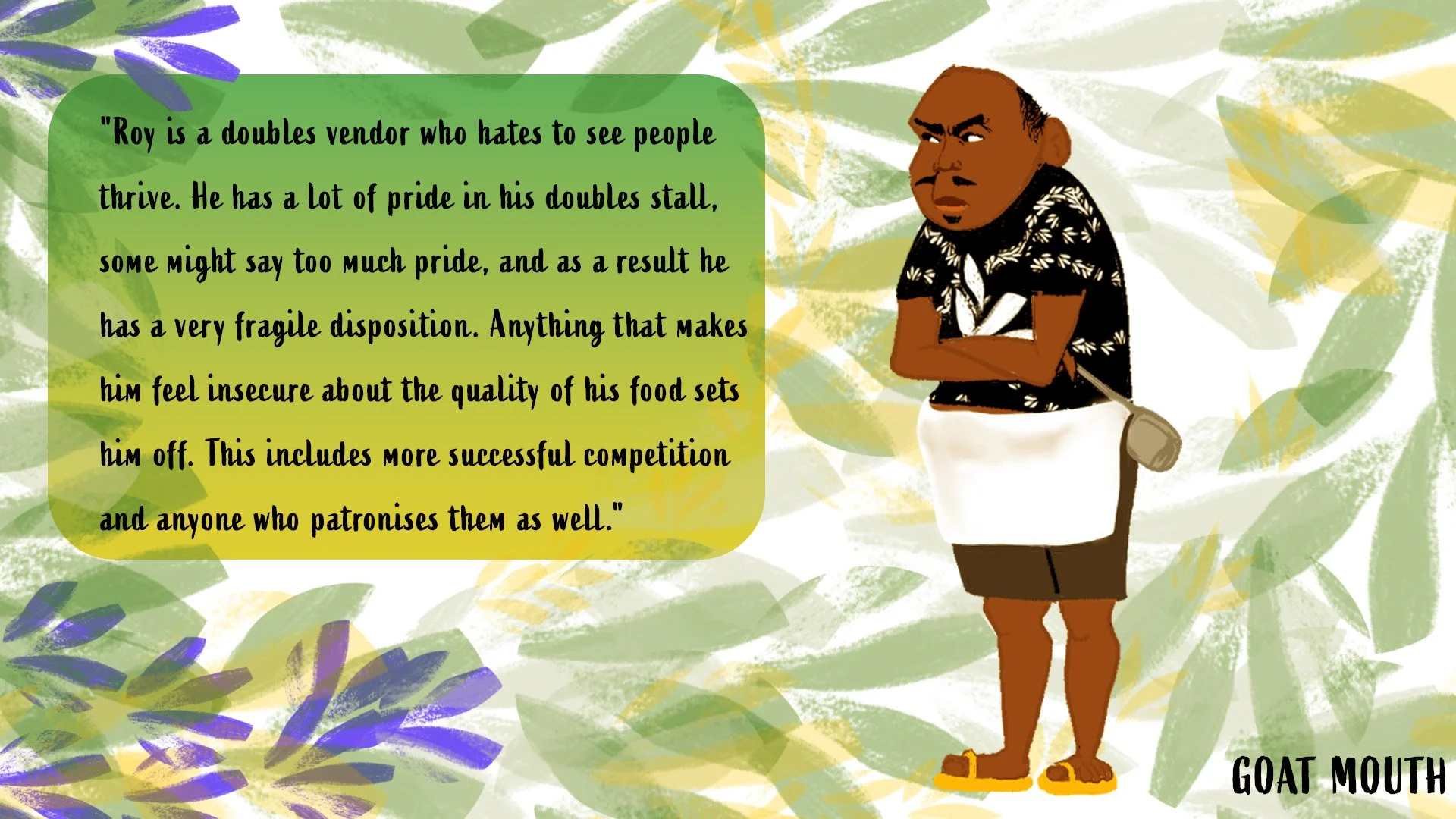 A bitter doubles vendor, consumed by jealousy over his competitor's success, attempts to steal the coconut vendor's customers using dark magic. When his supernatural scheme spectacularly backfires, the very rival he sought to destroy becomes his unlikely savior. Through the coconut vendor's unexpected kindness and help in undoing the magical chaos, the doubles vendor discovers the true cost of his jealousy and finds redemption in an act of genuine compassion.